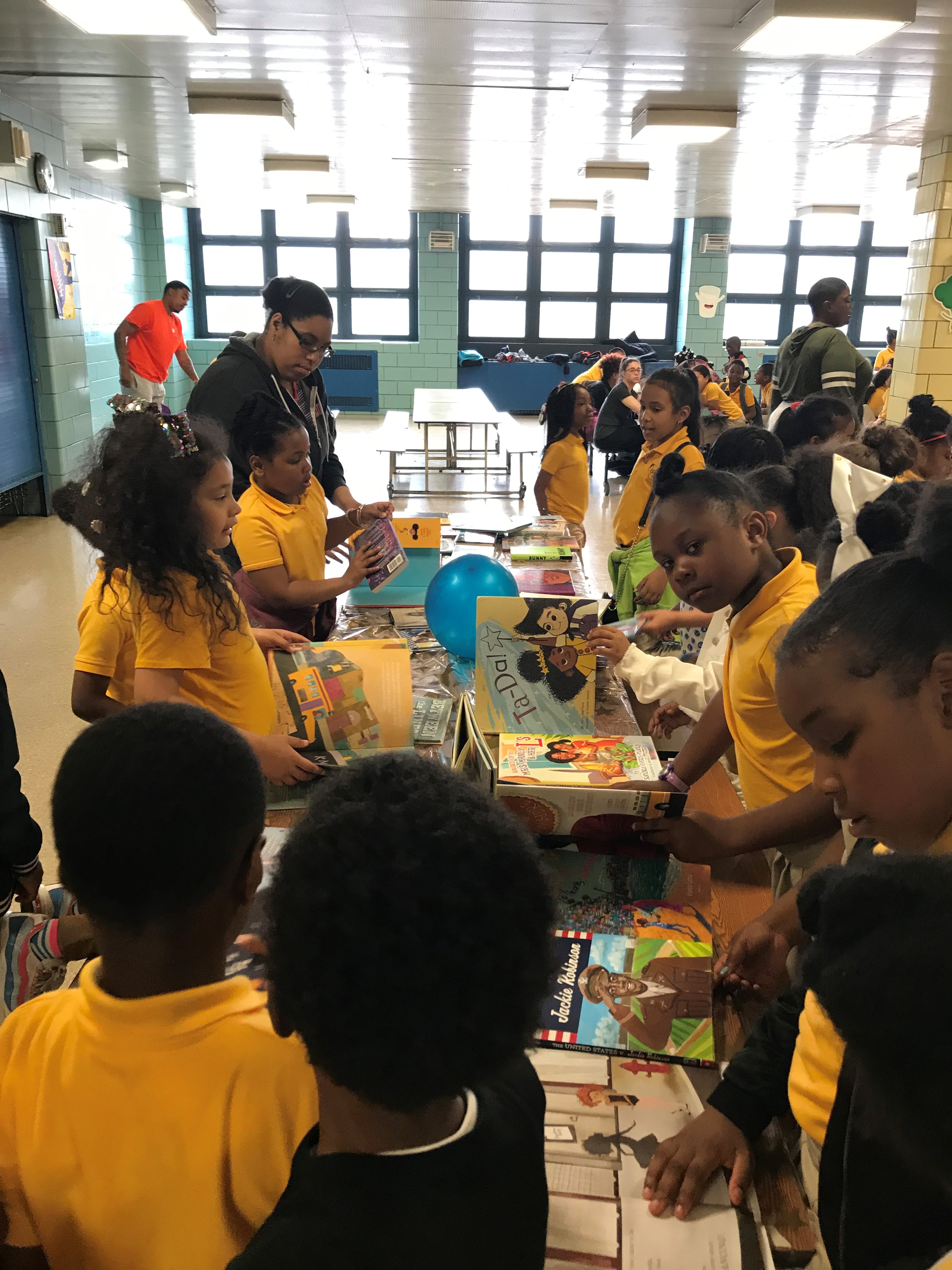 EGall May 30, 2019 3024 × 4032 EGall Students in PS 627 and NIA Community Services Network’s after-school program explore their new books. Photo credit: Elaysel German